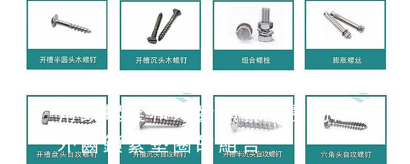 名稱: 1.機螺釘 2.自攻螺釘 3.鉆尾螺釘 4.墻板釘 5.纖維板釘 6.木螺釘7.六角木螺釘 8.不脫出螺釘 9.組合螺釘 10.微型螺釘 11.家具螺釘 12.電子螺釘 頭型: 1.六角頭(hexagon head) 2.六角頭法蘭面(hexagon head with fla