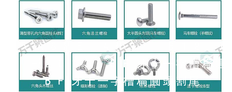 槽型:1.一字2.內三角3.內角四方4.十字5.米字6.花形7.梅花形8.花形一字9.特形10.內六角英文名稱十字槽盤頭組合機絲牙螺釘 采用的是GB818 Cross recessed pan head Combination screws十字槽盤頭機絲牙螺釘 采用的是GB818 Cross