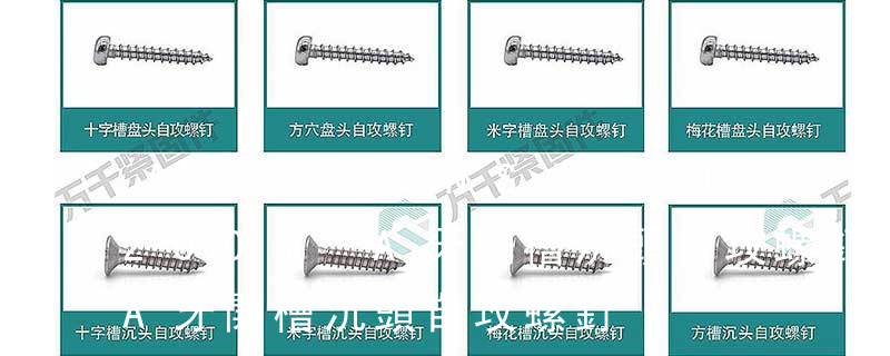 1.機螺釘 2.自攻螺釘 3.鉆尾螺釘 4.墻板釘 5.纖維板釘 6.木螺釘7.六角木螺釘 8.不脫出螺釘 9.組合螺釘 10.微型螺釘 11.家具螺釘 12.電子螺釘 13.鏈帶螺釘頭型 :1.六角頭(hexagon head)2.六角頭法蘭面(