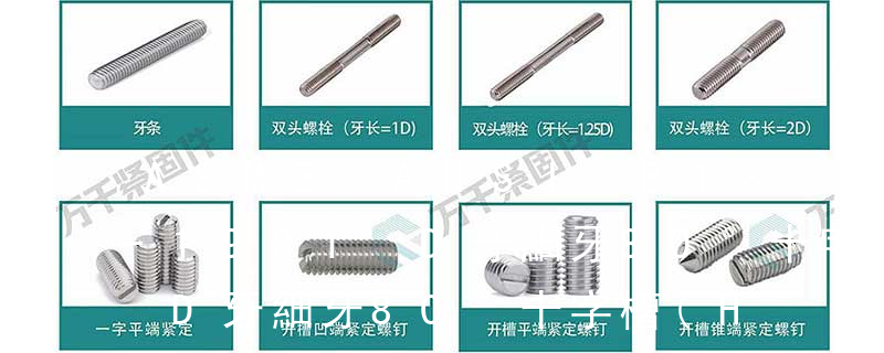 六角花形等;內扳擰:一字槽、十字槽H型、十字槽Z型、十字槽F型、四方槽、復合槽、內花鍵、內六角花形、內三角、內六角、內12角、離合器槽、六葉片型槽、高扭矩十字槽等。3、螺紋種類螺紋種類繁多,有自攻螺紋(