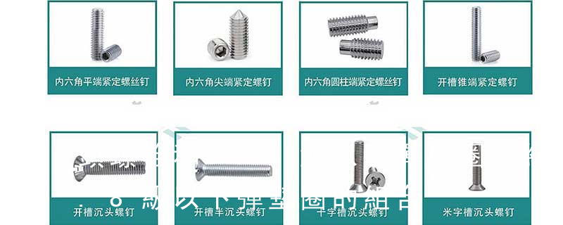 名稱: 1.機螺釘 2.自攻螺釘 3.鉆尾螺釘 4.墻板釘 5.纖維板釘 6.木螺釘7.六角木螺釘 8.不脫出螺釘 9.組合螺釘 10.微型螺釘 11.家具螺釘 12.電子螺釘 頭型: 1.六角頭(hexagon head) 2.六角頭法蘭面(hexagon head with