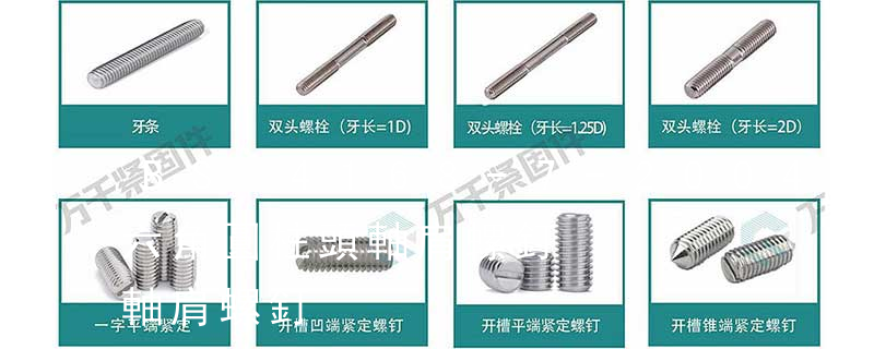 十二角螺栓、地角螺栓、膨脹螺栓、太陽能用雙段牙螺栓、內六角圓柱頭螺絲、內六角沉頭螺絲、半圓頭內六角螺絲、內六角圓柱頭軸肩螺絲、塞打螺絲、梅華槽螺絲、內六角緊定螺絲、一字緊定螺絲、方頭緊定螺絲、滾花頭螺絲、蝶