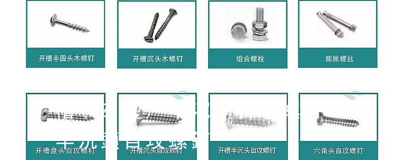 1)十字槽盤頭自鉆自攻螺釘 2)十字槽沉頭自鉆自攻螺釘 3)十字槽半沉頭自鉆自攻螺釘,跟上面沉頭螺絲接近。4)六角法蘭面自鉆自攻螺釘 5)六角凸緣自鉆 自攻螺釘根據材質可分為:鋼材1022A,不銹鐵410,不銹鋼304 自切自攻螺釘有以下幾種型式:十字槽盤頭自切自攻螺釘,十字槽沉頭自切自攻螺釘。十字槽半沉頭自切自攻螺釘,六角頭自切自攻螺釘。 自擠自攻螺釘的螺紋一般為機螺紋,很少采用自攻螺紋。在扳擰方式中,為確保高速自動裝配扳手的使用,一般不推薦